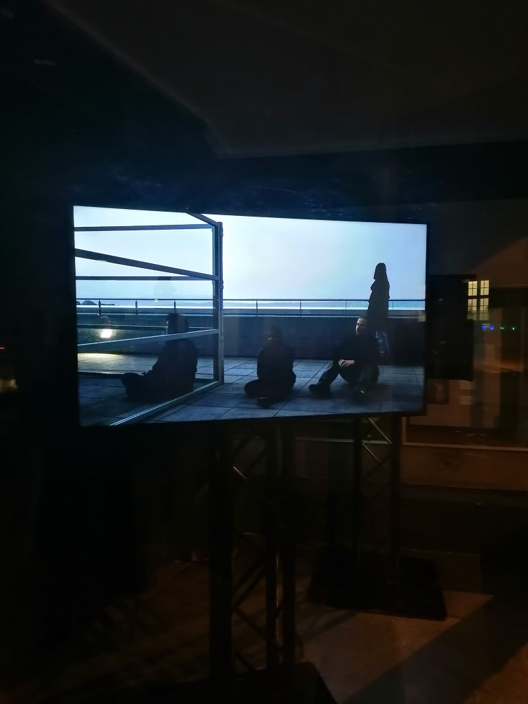Eine Verdichtung der Bewegung und des Sounds im Raum beginnt. Um das Publikum herum wird ein schwarzer Vorhang zugezogen. Wir sitzen näher beieinander. An einigen Momenten des Abends hat man eine Vorahnung, was gleich passieren könnte, doch das passiert nie. Kaiser wählt nicht den einfachen oder offensichtlichen Weg. Gegen Ende wird der Vorhang wieder geöffnet und das Publikum wird in Grüppchen in den Zuschauerraum geführt. Die Performer:innen stellen sich in einer Reihe mit den Rücken zum Publikum auf. Sie bewegen ihre Becken vor und zurück. Sie drehen sich um, sie halten die Hände wie die vier kleinen Schwäne und ändern gemeinsam den Gesichtsausdruck: ernst, lächeln, übertrieben lächeln.